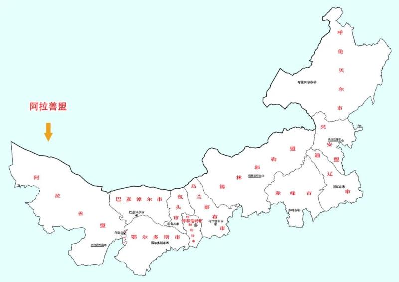 阿拉善盟地處內(nèi)蒙古自治區(qū)最西部,有“五彩斑斕之地”的美譽(yù),下轄3個(gè)邊境旗及策克、烏力吉兩個(gè)邊境口岸,邊境線全長(zhǎng)735公里。世界三大胡楊林之一的額濟(jì)納胡楊林、世界三大載人航天中心之一的東風(fēng)航天城(酒泉衛(wèi)星發(fā)射中心)坐落于此。額濟(jì)納地區(qū)出土的居延漢簡(jiǎn),被譽(yù)為20世紀(jì)初中國(guó)古文獻(xiàn)四大發(fā)現(xiàn)之一。