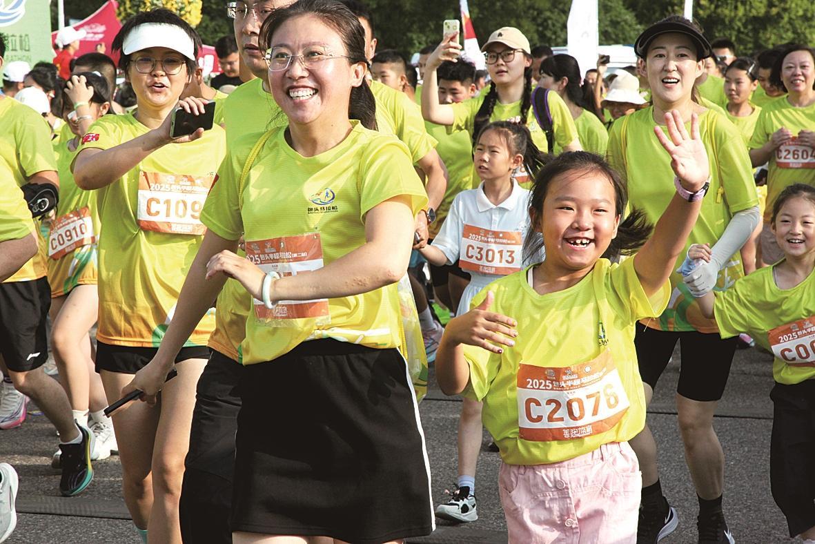 參加歡樂(lè)跑的10歲小朋友郝雨嘉堅(jiān)定地說(shuō):“雖然天氣很熱,但也只有五公里,有爸爸媽媽帶著我,肯定能跑下來(lái),我還想去看非遺表演和紀(jì)念品呢?!?/p>
