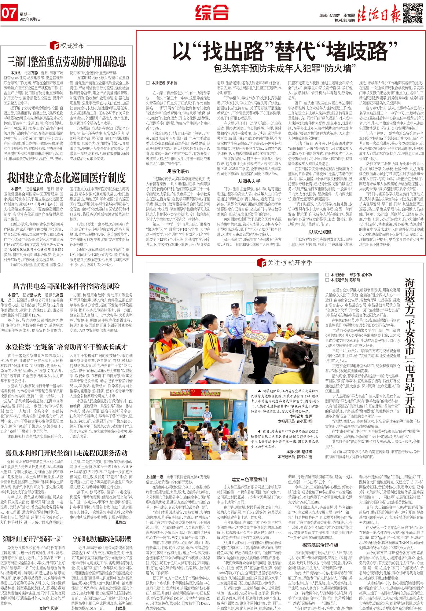 “我們與轄區(qū)各學校建立良好的互動關(guān)系,及時掌握在校學生動態(tài),對違法犯罪的苗頭實現(xiàn)早發(fā)現(xiàn)、早干預。同時,加強校園周邊巡邏,防止學生放學后與社會閑散人員接觸?!卑柖〈蠼峙沙鏊彼L王磊介紹,家庭、學校、社區(qū)、公安同向發(fā)力,以“找出路”替代“堵歧路”,精準施策、暖心幫扶。當派出所的案卷中涉及未成年人的案件記錄日益減少,這座城市收獲的不僅是社會治安綜合治理精細化水平提升,更為寶貴的是青少年在法治陽光下健康成長。(記者 郭君怡)