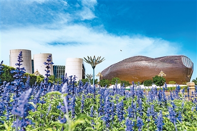 從外觀上來(lái)看,斜置的墻壁、反重力的扭曲線條、玻璃的通透與金屬的冷峻相結(jié)合等現(xiàn)代建筑手段,在七大建筑得到了恰如其分的展現(xiàn)。其內(nèi)部空間結(jié)構(gòu)同樣值得稱贊。在博物館,記者走遍各個(gè)展區(qū),從樓梯、窗戶、展區(qū)來(lái)看,其空間結(jié)構(gòu)與功能布局是美觀和實(shí)用的完美融合。在圖書館,記者發(fā)現(xiàn),遠(yuǎn)山框進(jìn)窗戶,綠色環(huán)繞四周。在這里,功能性的光芒與美學(xué)性的溫度和諧共生。