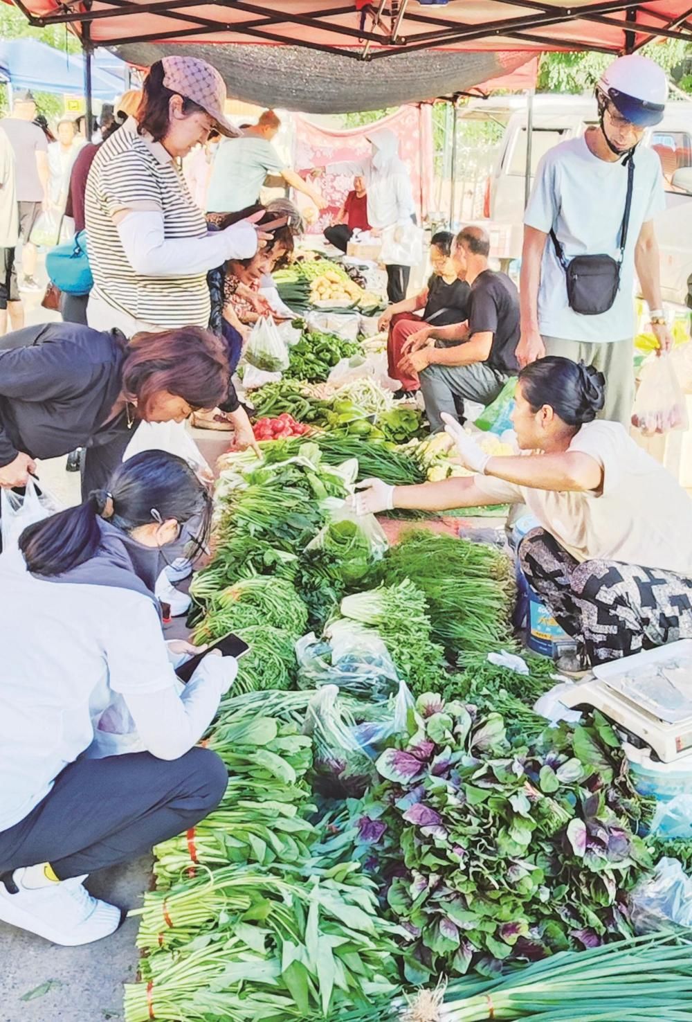 夏日的早市里,菜攤攤主牛麗梅就已經(jīng)擺放好新鮮的蔬菜,泡沫箱里的黃瓜頂著嫩黃的花,筐里的西紅柿還帶著露珠,“這些菜都是半夜起來從地里現(xiàn)摘的,你看看這黃瓜頂花帶刺的,多新鮮。我已經(jīng)在這個早市擺了十來年攤了,人們還是很認可我家的蔬菜,就是累點也覺得挺高興的。”她熱情地招呼著前來買菜的市民,過秤、算賬,干脆利落,一看就有著豐富的賣菜經(jīng)驗。