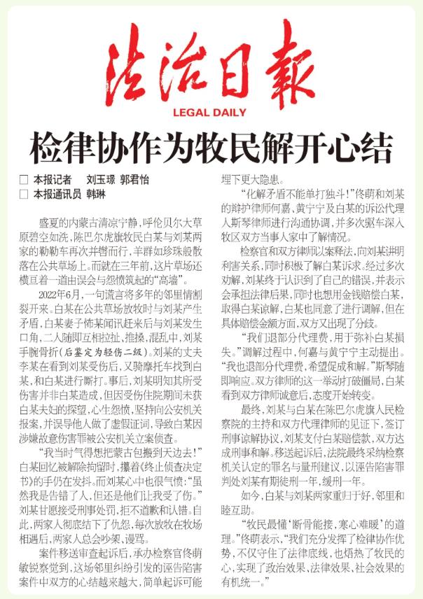 “牧民最懂‘?dāng)喙悄芙?,寒心難暖’的道理?!辟∶缺硎?,“我們充分發(fā)揮了檢律協(xié)作優(yōu)勢(shì),不僅守住了法律底線,也焐熱了牧民的心,實(shí)現(xiàn)了政治效果、法律效果、社會(huì)效果的有機(jī)統(tǒng)一。”(作者 劉玉璟 郭君怡 韓琳)