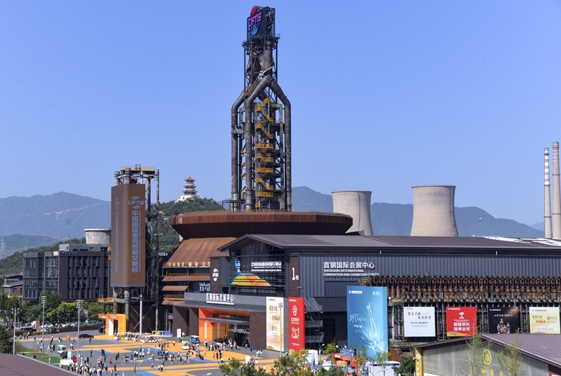 9月14日拍攝的北京首鋼園2025年服貿(mào)會展館外景。