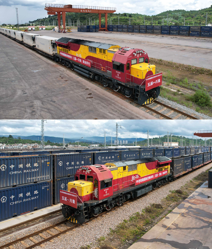 當日,中老鐵路國際貨物列車(玉溪—萬象)實現(xiàn)雙向開行。中老鐵路自2021年12月開通以來,截至今年7月底,運輸貨物超6450萬噸,其中跨境貨物突破1490萬噸。