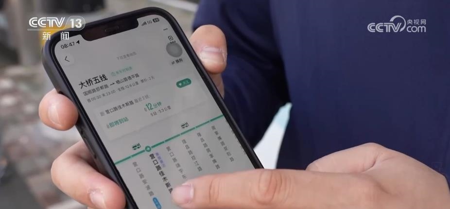 總臺央視記者 吳天白:除了共享單車用上了北斗芯片,坐公交車我們也能體會到北斗帶來的便利。通過車站的站牌可以看到公交車的班次。這輛公交車開到哪里了?還有多久到?我們打開導航軟件,這些信息一目了然,出門前就可以合理規(guī)劃時間,選擇我們的出行交通工具。