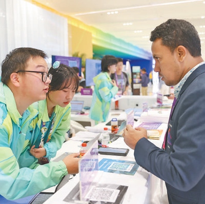 杭州亞運(yùn)會主媒體中心志愿者為記者提供咨詢服務(wù)。本報(bào)記者 張武軍攝