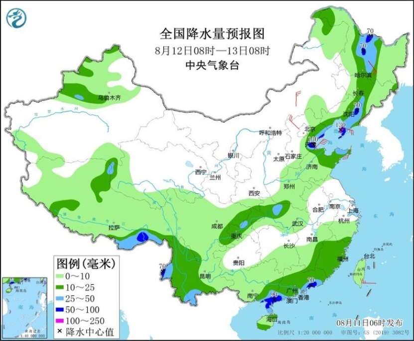 12日,黑龍江中北部、吉林南部、遼寧東部和南部等地部分地區(qū)有大到暴雨,遼東半島局地大暴雨。