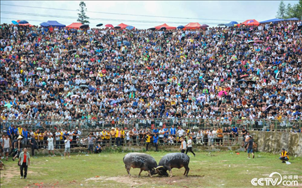 貴州黔東南:瑤寨斗牛慶豐收。