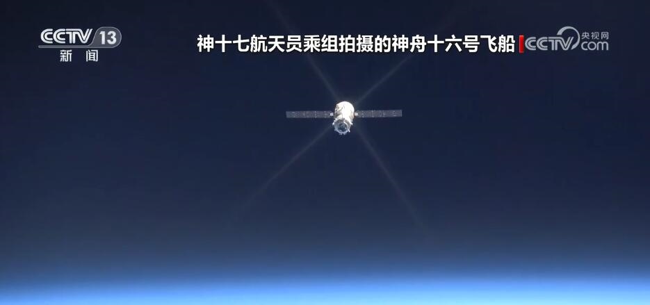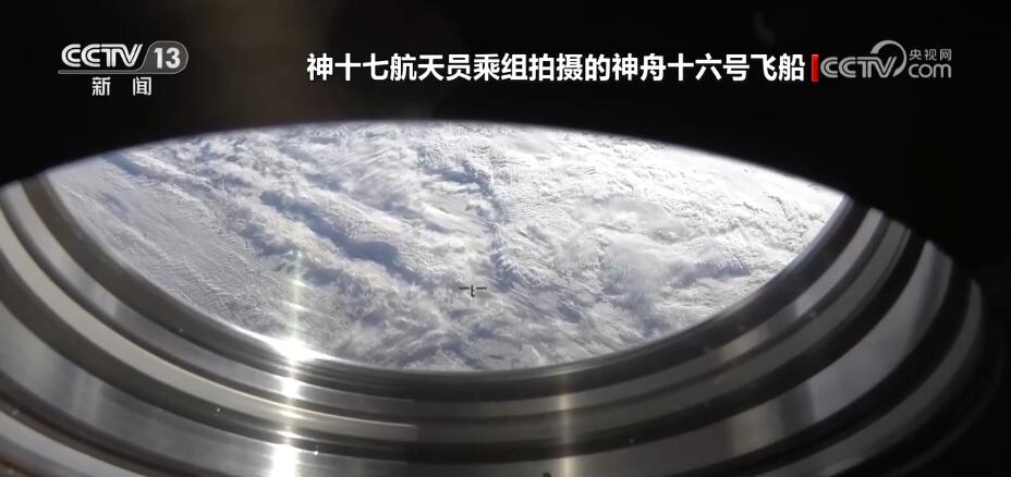 這是2023年10月30日,神舟十七號乘組在空間站內拍攝的畫面,畫面中,神舟十六號飛船正在撤離空間站。