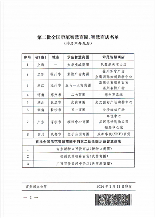 央視網(wǎng)消息:據(jù)商務(wù)部網(wǎng)站消息,商務(wù)部發(fā)布關(guān)于公布第二批全國示范智慧商圈、智慧商店名單的通知,認(rèn)定8個商圈、15個商店為第二批“全國示范智慧商圈”、“全國示范智慧商店”。