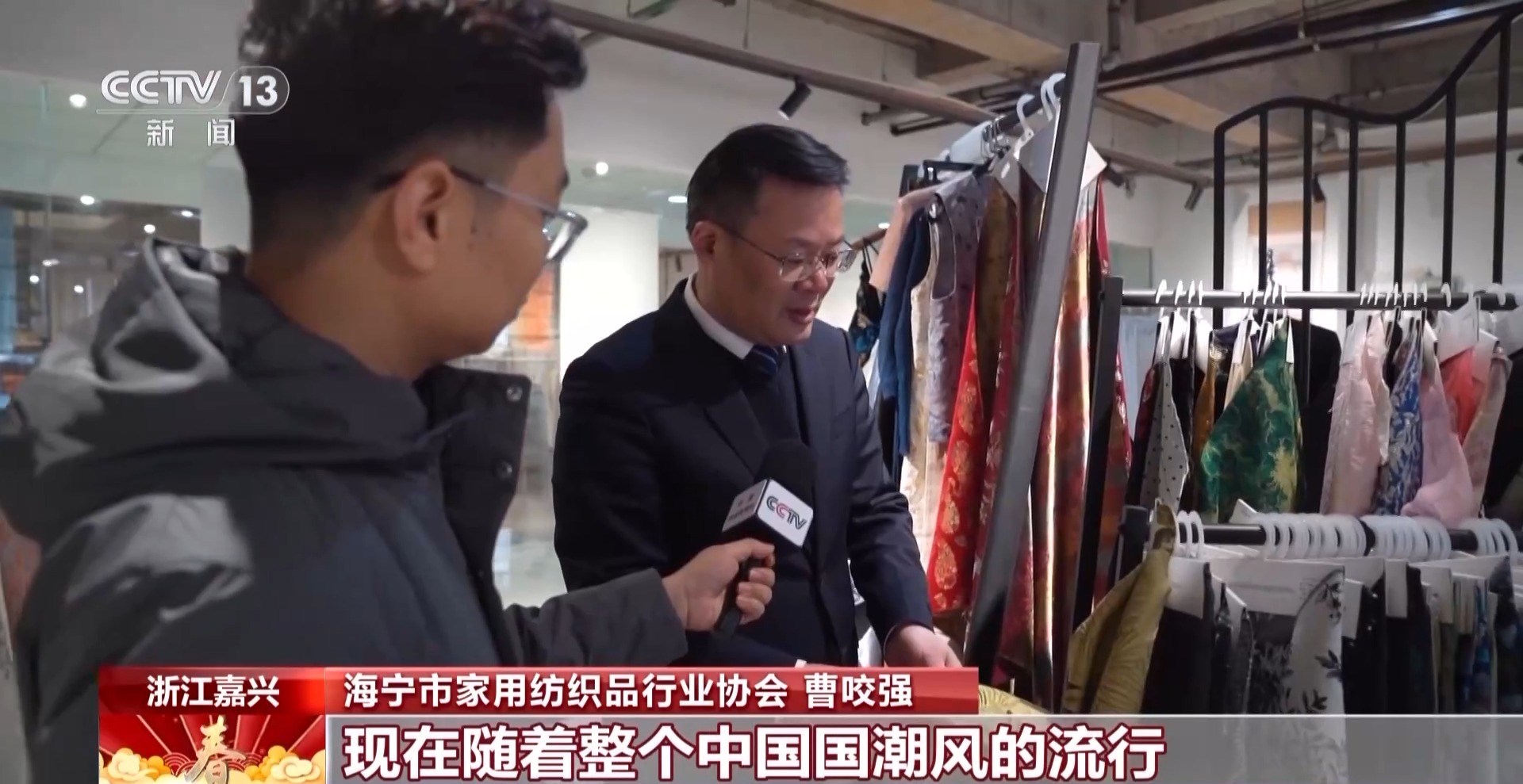 海寧市家用紡織品行業(yè)協(xié)會 曹咬強(qiáng):這款面料主要是供應(yīng)在意大利市場上,這個色系的面料主要供應(yīng)在美國市場上。現(xiàn)在隨著整個中國國潮風(fēng)的流行,特別是在東南亞市場,他們每次下訂單都是60萬米、80萬米。