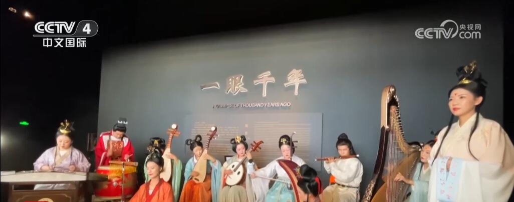 在山西太原北齊壁畫博物館,一場“文物”和“音樂”、“傳承”和“創(chuàng)新”的音樂會正在上演。樂師用古琴、琵琶、箜篌、笛子等民族樂器演繹出了《一眼千年·夢回北齊》,將北齊時期武安王徐顯秀墓室中的《夫婦宴飲圖》壁畫中的樂隊場景完美呈現(xiàn)。而在互動體驗區(qū),觀眾撥動電子屏上的琴弦,就可以和投影墻上的樂伎共彈一曲。