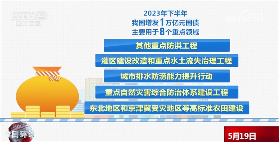 去年下半年,我國(guó)增發(fā)了1萬(wàn)億元國(guó)債,主要用于8個(gè)重點(diǎn)領(lǐng)域,包括災(zāi)后恢復(fù)重建,支持以京津冀為重點(diǎn)的華北地區(qū)等災(zāi)后恢復(fù)重建和提升防災(zāi)減災(zāi)能力,促進(jìn)災(zāi)區(qū)基本生產(chǎn)生活條件和經(jīng)濟(jì)發(fā)展恢復(fù)到災(zāi)前的水平,以海河、松花江流域等北方地區(qū)為重點(diǎn)的骨干防洪治理工程,自然災(zāi)害應(yīng)急能力提升工程,其他重點(diǎn)防洪工程,灌區(qū)建設(shè)改造和重點(diǎn)水土流失治理工程,城市排水防澇能力提升行動(dòng),重點(diǎn)自然災(zāi)害綜合防治體系建設(shè)工程,東北地區(qū)和京津冀受災(zāi)地區(qū)等高標(biāo)準(zhǔn)農(nóng)田建設(shè)。