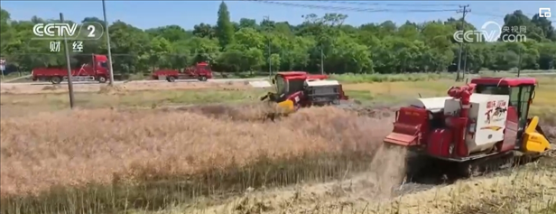 南方近期多雨,多地進(jìn)行夏糧搶收。安徽4300多萬畝小麥逐漸進(jìn)入成熟期,正由南向北展開機(jī)械化收割。2024年,安徽機(jī)收率超過98%,預(yù)計6月初全部收完。江西、湖北搶抓晴好天氣,跨區(qū)調(diào)配農(nóng)機(jī),江西九江16萬畝小麥提前開鐮,湖北咸寧8.9萬畝小麥加緊搶收。