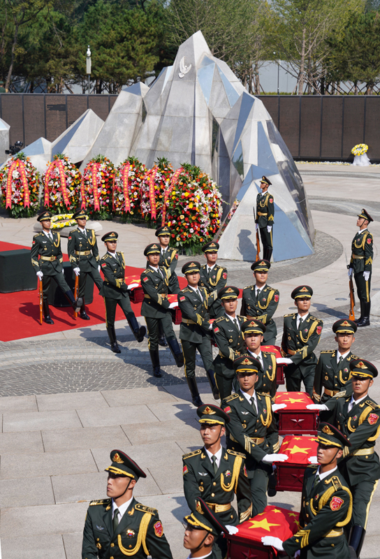 9月13日,第十二批在韓中國(guó)人民志愿軍烈士遺骸安葬儀式在沈陽(yáng)抗美援朝烈士陵園舉行。30位志愿軍烈士英靈,在闊別祖國(guó)70多年后回到中華大地安息。