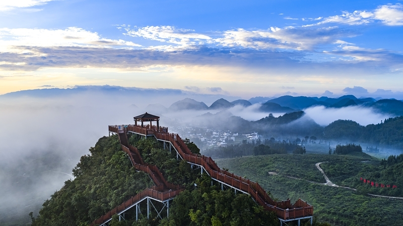 8月25日在云南西疇國(guó)家石漠公園拍攝的初秋晨景(無(wú)人機(jī)照片) 。