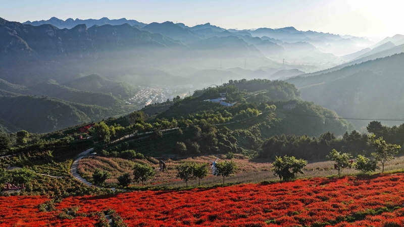 9月7日在河北省承德市興隆縣南天麗景風(fēng)景區(qū)拍攝的秋日晨景(無(wú)人機(jī)照片)。