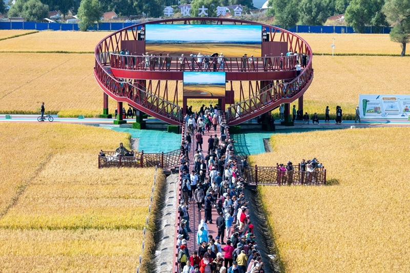 9月23日,2025年中國(guó)農(nóng)民豐收節(jié)黑龍江省主場(chǎng)活動(dòng)在北大荒農(nóng)墾集團(tuán)閆家崗農(nóng)場(chǎng)稻田藝術(shù)公園拉開(kāi)帷幕,人們歡聚一堂,共享一場(chǎng)同耕耘、共歡歌的豐收盛宴。