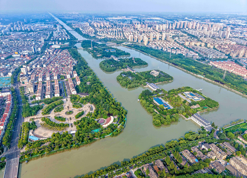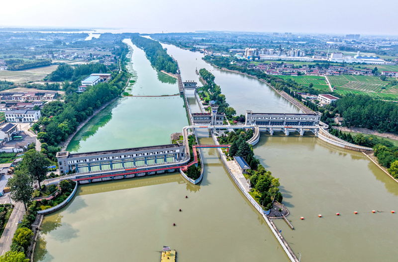 這是位于江蘇省揚(yáng)州市江都區(qū)的南水北調(diào)東線一期工程運(yùn)鹽閘、邵仙套閘、邵仙閘洞(7月6日攝,無人機(jī)照片)。