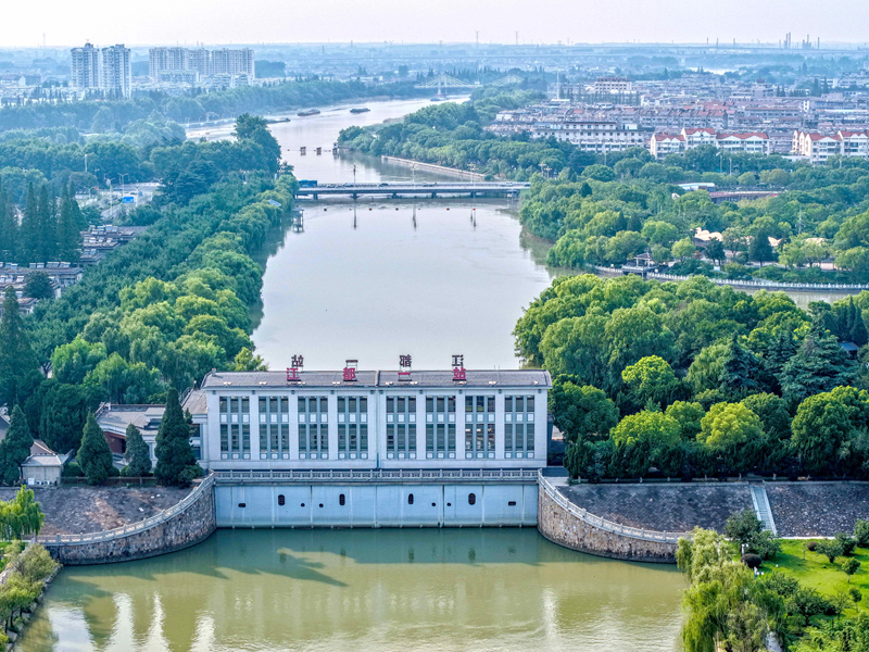 這是位于江蘇省揚(yáng)州市江都區(qū)的南水北調(diào)東線源頭江都水利樞紐一站(7月6日攝,無人機(jī)照片)。