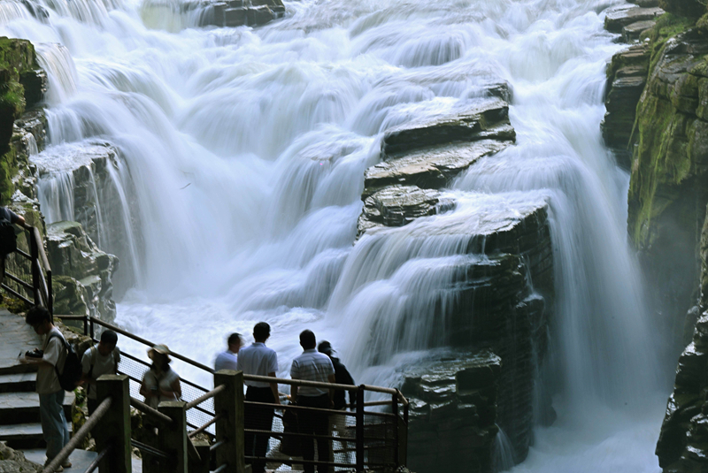 7月10日,游客在利川市騰龍洞景區(qū)游覽“臥龍吞江”自然奇觀。