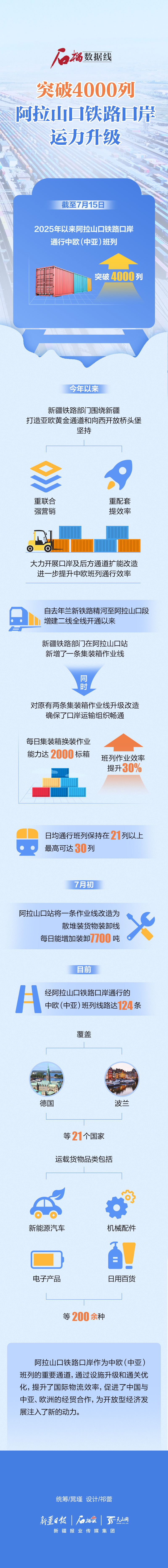 截至7月15日,2025年以來阿拉山口鐵路口岸通行中歐(中亞)班列突破4000列。