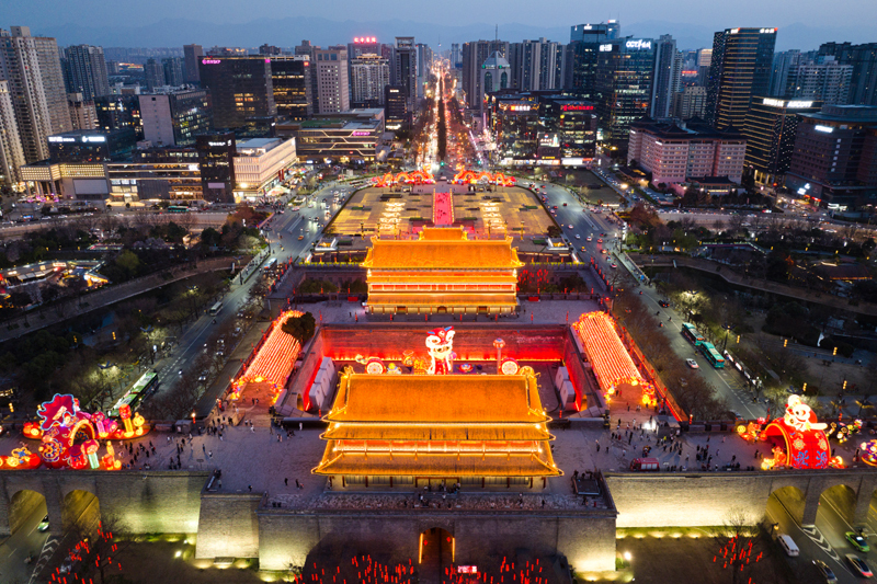 西安南門(mén)商圈夜景(3月19日攝,無(wú)人機(jī)照片)。