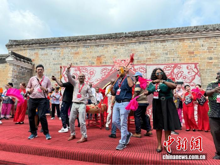 中新網(wǎng)7月21日電(記者 黃方) 鼓聲“咚咚咚”在江西贛州龍南市關西新圍響起,非洲記者大會秘書長威廉·奧洛首次嘗試舞龍。他興奮地搖動著龍頭,跟隨節(jié)奏躍動,忍不住連聲贊嘆:“這太有節(jié)奏感了!”