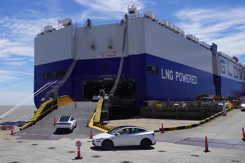 上海自貿(mào)試驗區(qū)臨港新片區(qū)管委會綜保處主任科員袁乾鵬介紹,隨著從“船等車”變?yōu)椤败嚨却保衲晟习肽?,上海南港外貿(mào)進(jìn)出口車輛達(dá)29.3萬輛,同比增長32.58%。