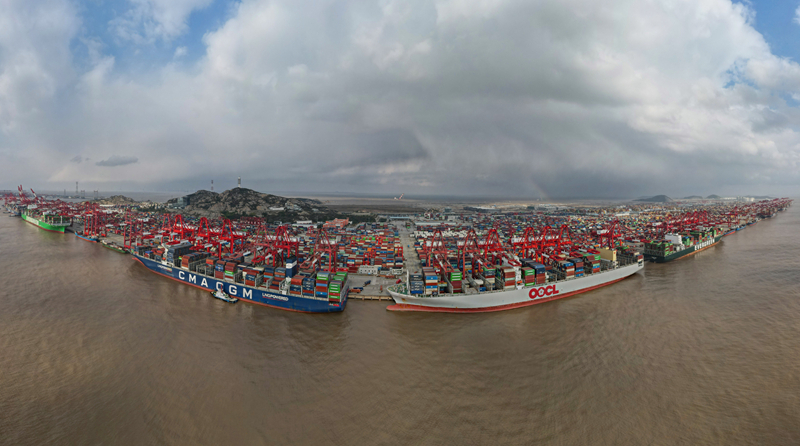 2024年12月18日拍攝的洋山港集裝箱碼頭(無人機全景照片)。新華社記者 方喆 攝