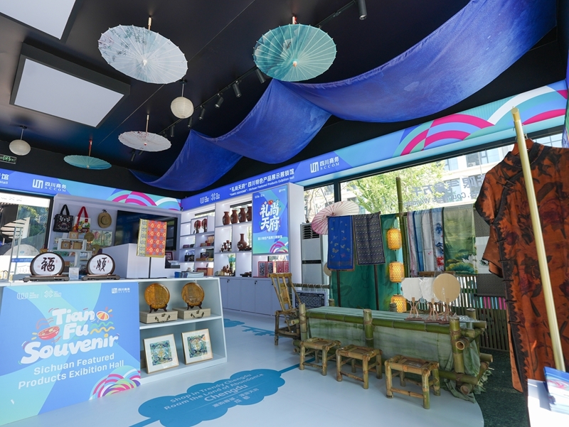 這是8月3日在成都世運(yùn)會(huì)運(yùn)動(dòng)員村A區(qū)拍攝的四川特色產(chǎn)品展示展銷館。