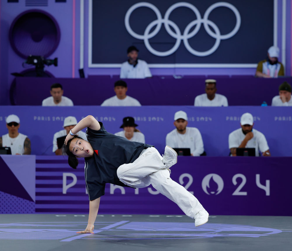 巴黎奧運(yùn)會霹靂舞女子組比賽,中國選手曾瑩瑩在比賽中。新華社記者 徐子鑒 攝