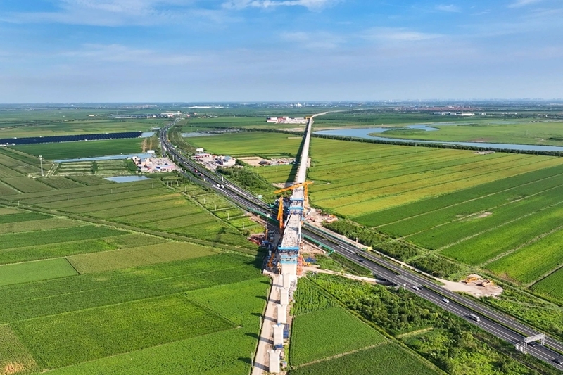 8月9日凌晨,由中鐵十四局承建的津?yàn)H高鐵東壽特大橋跨榮烏高速連續(xù)梁成功合龍。該連續(xù)梁位于山東壽光,是津?yàn)H高鐵山東段最大跨度連續(xù)梁,主跨長(zhǎng)168米。