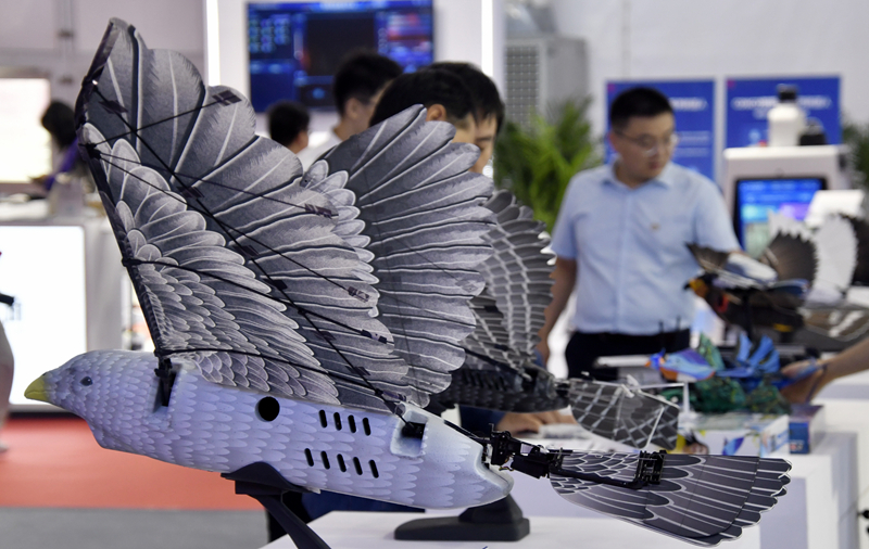 2025世界機(jī)器人大會(huì)上展示的仿生機(jī)器鳥(niǎo)(8月8日攝)。