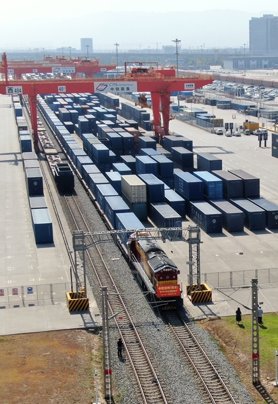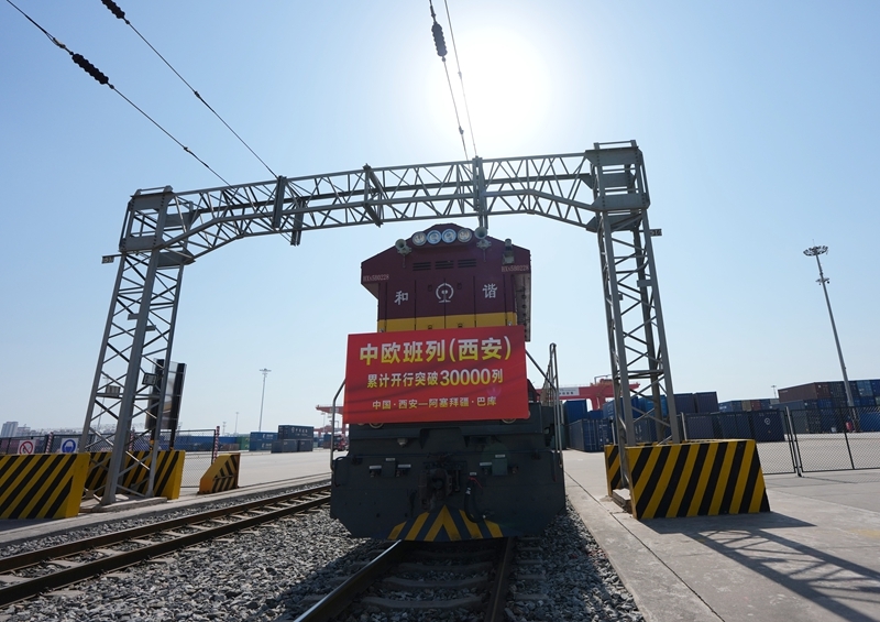 當(dāng)日上午,滿載著55個(gè)集裝箱光伏組件的X9043次中歐班列從西安國(guó)際港站駛出,開(kāi)往阿塞拜疆巴庫(kù),標(biāo)志著中歐班列(西安)自2013年開(kāi)行首列以來(lái)累計(jì)開(kāi)行突破30000列,開(kāi)行總量超過(guò)全國(guó)中歐班列累計(jì)開(kāi)行總量的四分之一。西安國(guó)際港站也成為了全國(guó)首個(gè)中歐班列開(kāi)行量突破30000列的車(chē)站,開(kāi)行量、貨運(yùn)量、重箱率等核心指標(biāo)位居全國(guó)第一。