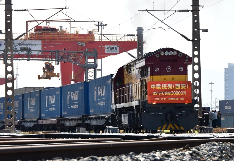 8月13日,X9043次中歐班列從西安國(guó)際港站駛出開(kāi)往阿塞拜疆巴庫(kù)。