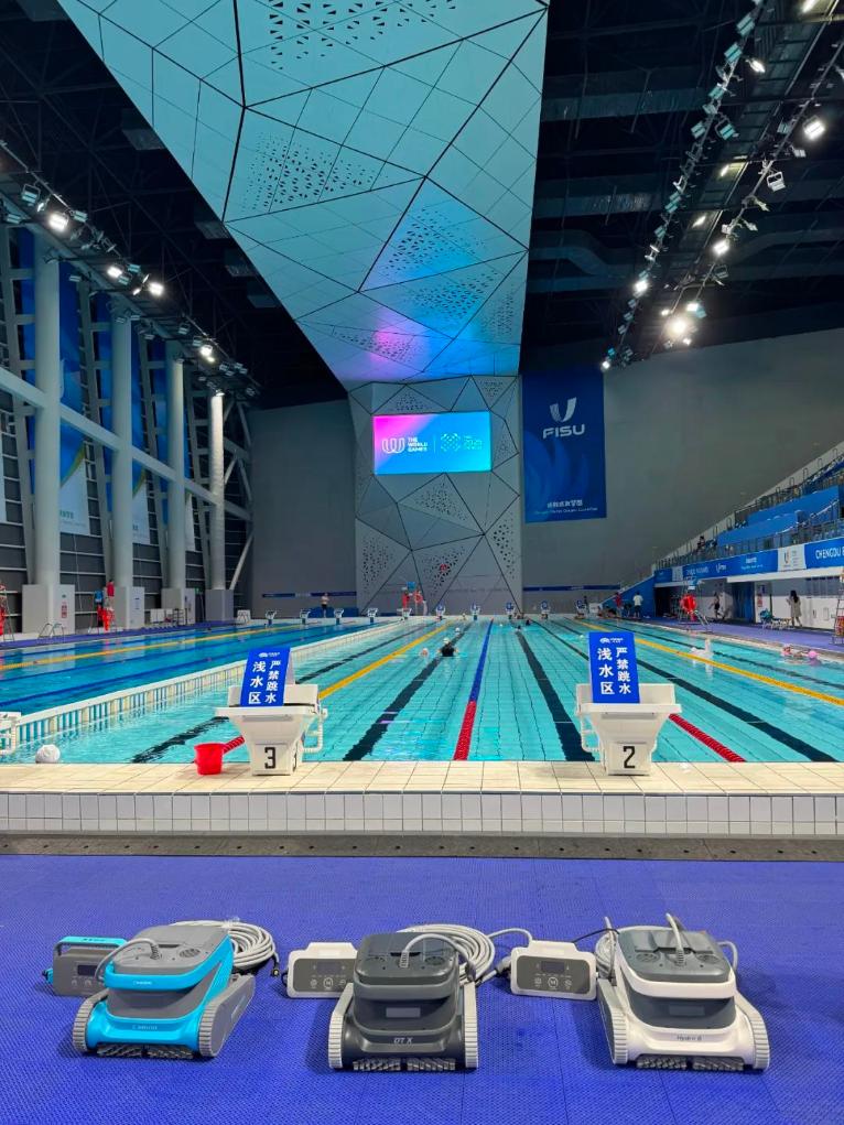 13日,世運會皮艇球項目在簡陽文體中心游泳館開賽,與運動員們一同出現(xiàn)在泳池里的還有幾位特殊的“清潔工”。據(jù)場館工作人員介紹,賽事期間場館投入了泳池清潔機器人設(shè)備,完成對泳池的日常維護及清潔任務(wù)。