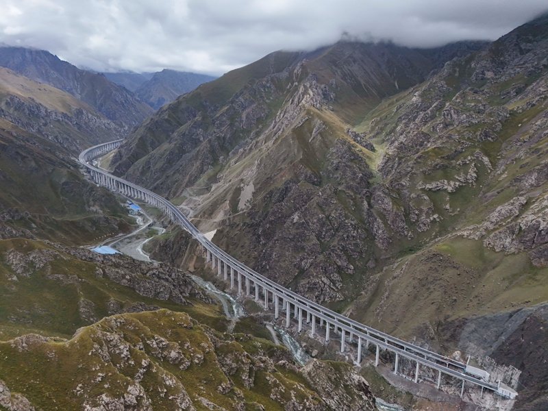 新疆烏尉高速公路穿越天山山脈(8月19日攝,無人機(jī)全景照片)。