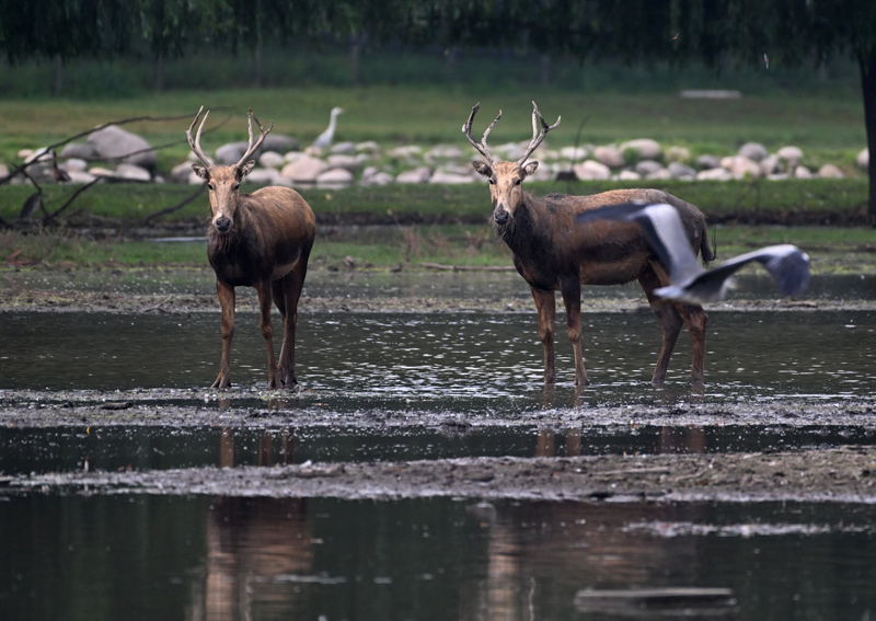 8月18日在北京麋鹿苑拍攝的麋鹿國家保護(hù)研究中心。