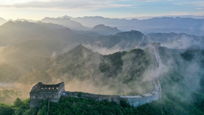 8月25日清晨,位于河北省承德市灤平縣的金山嶺長(zhǎng)城出現(xiàn)云海景觀。涌動(dòng)的云海與長(zhǎng)城、山巒相互交融,壯美如畫。