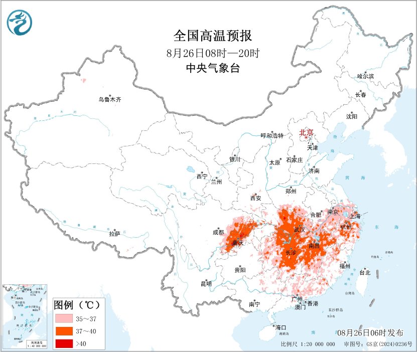 全國(guó)高溫預(yù)報(bào)圖(8月26日08時(shí)-20時(shí))