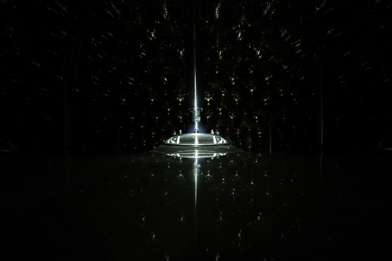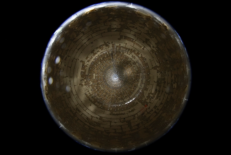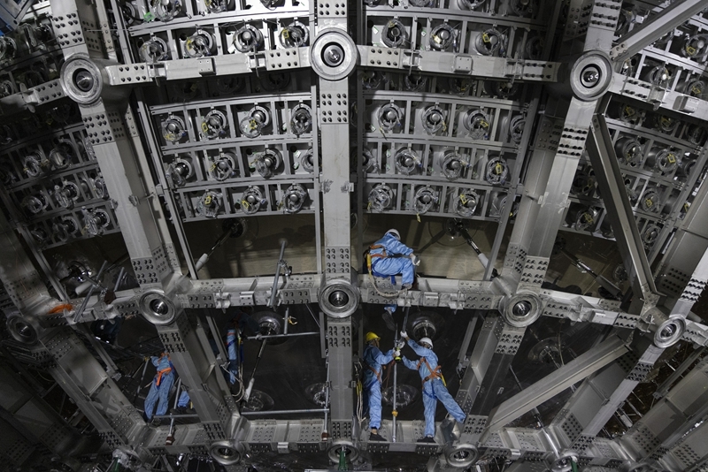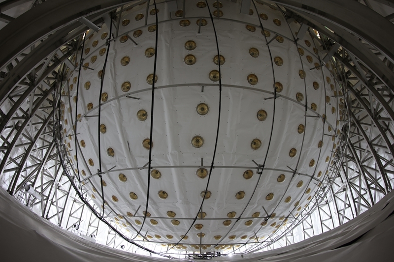 從江門中微子實(shí)驗(yàn)球底拍攝的中心探測(cè)器有機(jī)玻璃球(2024年11月22日攝)。