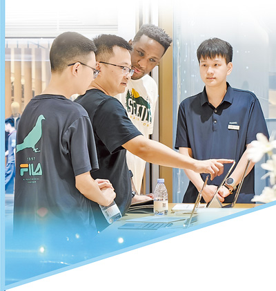 “入境游客喜歡選購(gòu)耳機(jī)、AI眼鏡以及半導(dǎo)體手持制冷風(fēng)扇。今年歐洲天氣比較炎熱,有一名外國(guó)客人一次性買了兩箱半導(dǎo)體手持制冷風(fēng)扇?!卑桶厣畴娮赢a(chǎn)品生活館負(fù)責(zé)人盧華介紹,與去年相比,今年外國(guó)客商增加20%,高峰時(shí)段店里有30%的客戶是外國(guó)人。