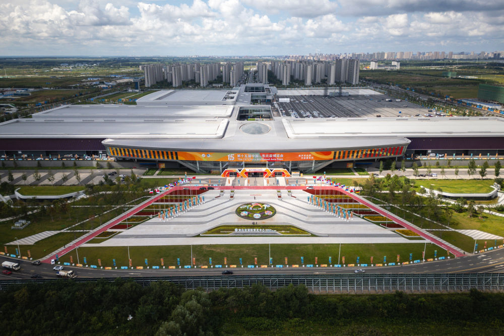 這是2025年8月26日拍攝的第十五屆中國(guó)—東北亞博覽會(huì)展館外景(無人機(jī)照片)。新華社記者 許暢 攝