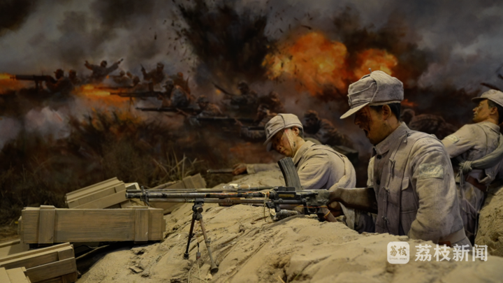 全連滿打滿算僅82人,裝備只有一挺重機(jī)槍、三挺輕機(jī)槍和少量槍榴彈。而進(jìn)犯的日偽軍上千人,不僅兵力懸殊,更配有野戰(zhàn)炮、重機(jī)槍等精良武器。眼看劉老莊的群眾尚未撤離,為掩護(hù)百姓和淮海區(qū)黨政機(jī)關(guān)安全轉(zhuǎn)移,4連官兵在連長白思才、指導(dǎo)員李云鵬的率領(lǐng)下,毅然選擇留下來奮勇阻擊。