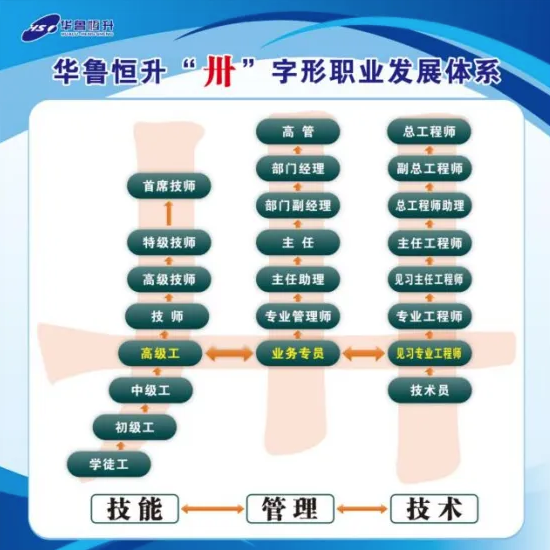 華魯恒升這個“卅”字,正是湖北總工會“卅”字形職業(yè)發(fā)展體系的縮影?!凹寄埽夹g(shù)-管理”三條事業(yè)路徑既能縱向發(fā)展又能橫向連接;既可以在任一賽道向上攀登,又能橫向貫通跨領(lǐng)域成長成才。