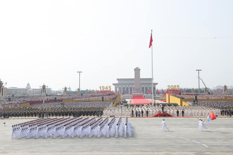 9月3日,紀念中國人民抗日戰(zhàn)爭暨世界反法西斯戰(zhàn)爭勝利80周年大會在北京隆重舉行。這是海軍方隊接受檢閱。