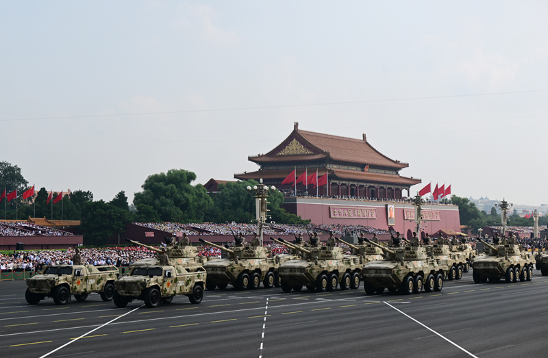 9月3日,紀念中國人民抗日戰(zhàn)爭暨世界反法西斯戰(zhàn)爭勝利80周年大會在北京隆重舉行。這是地面突擊方隊接受檢閱。