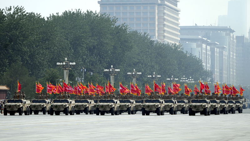 9月3日,紀念中國人民抗日戰(zhàn)爭暨世界反法西斯戰(zhàn)爭勝利80周年大會在北京隆重舉行。這是信息支援部隊方隊接受檢閱。