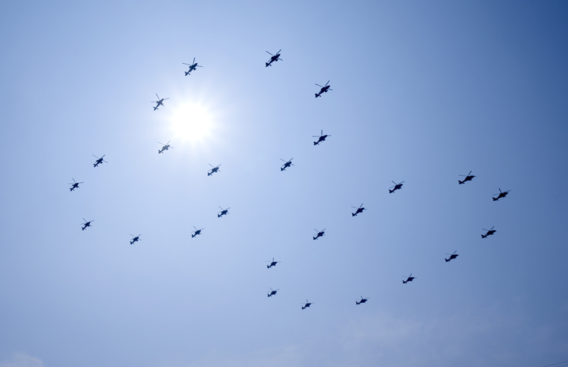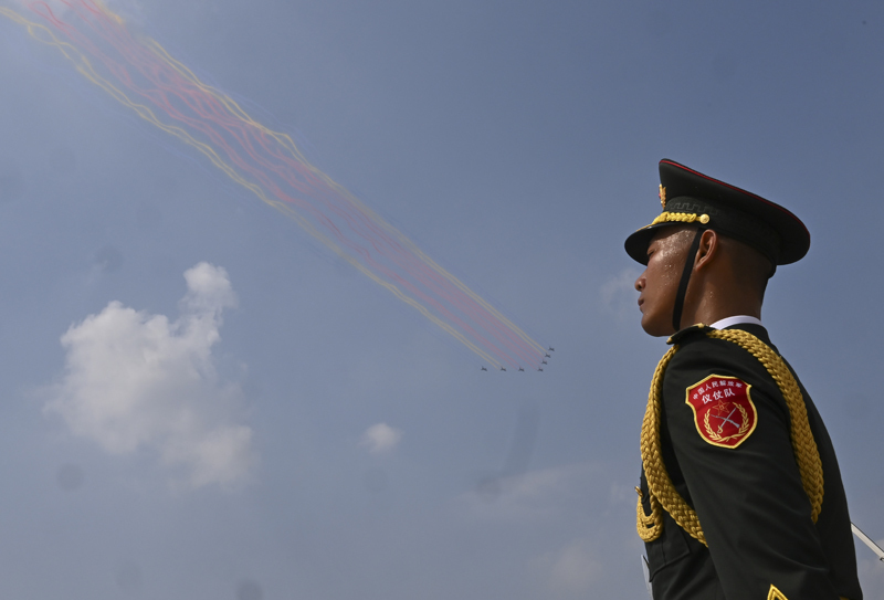 9月3日,紀念中國人民抗日戰(zhàn)爭暨世界反法西斯戰(zhàn)爭勝利80周年大會在北京隆重舉行。這是空中梯隊接受檢閱。